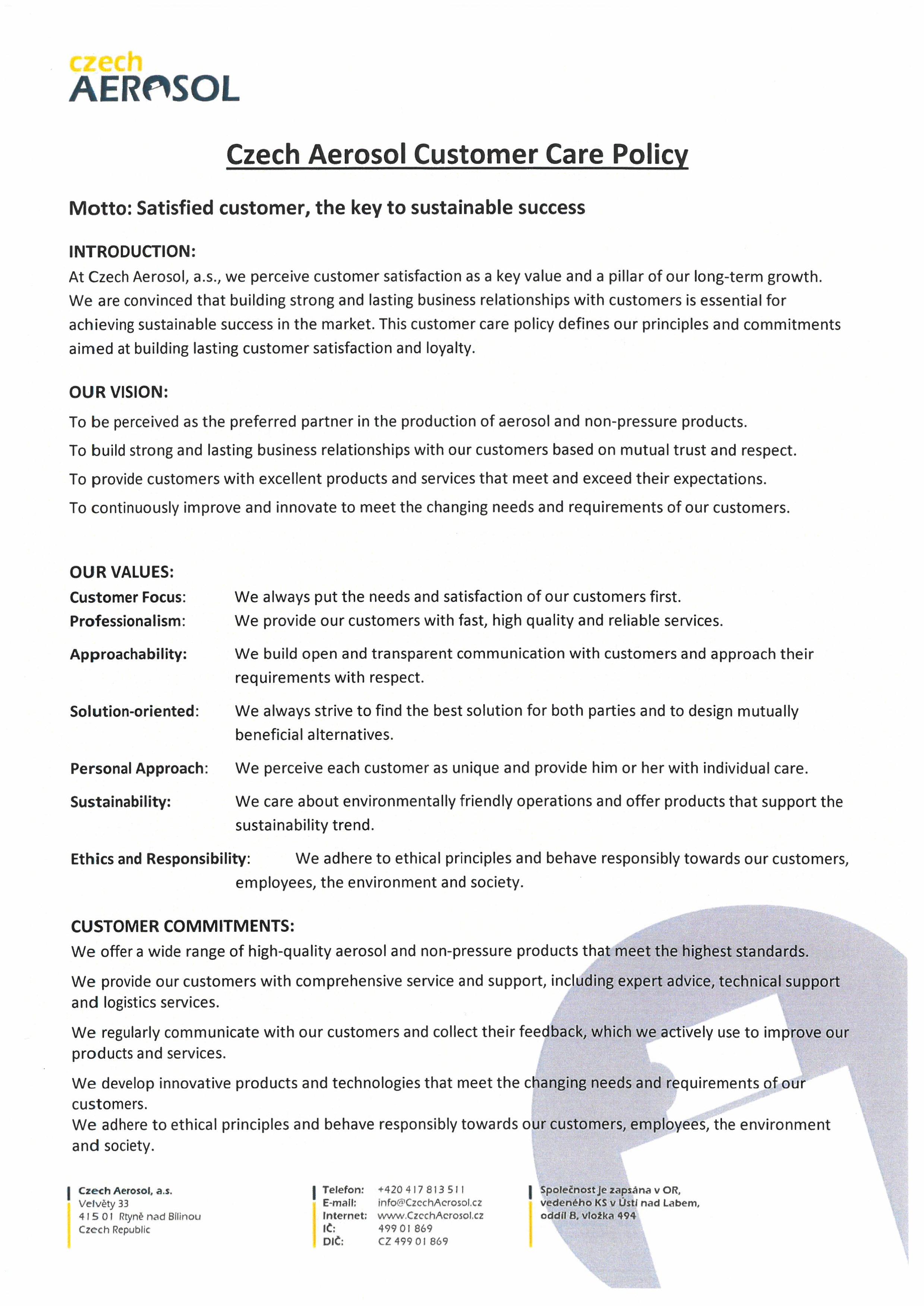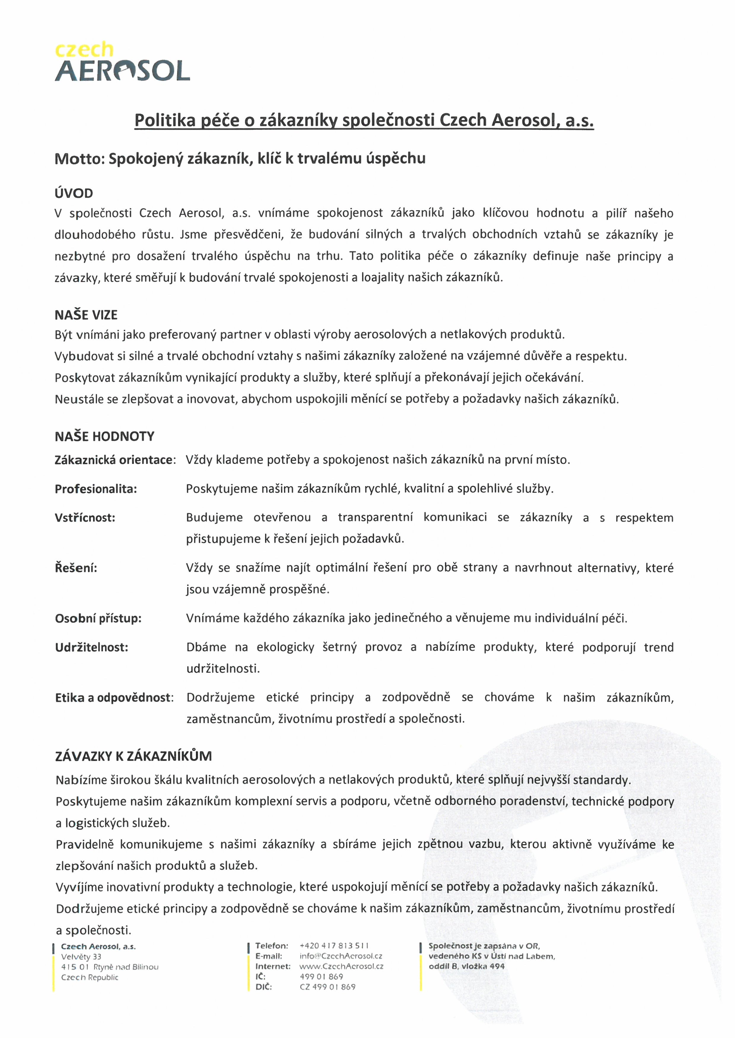 Vizí pro Czech Aerosol, a.s. je proces trvalého zlepšování.